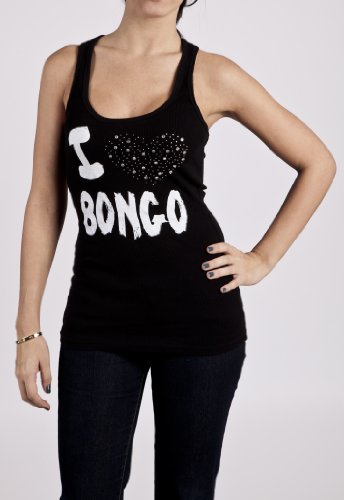 - 3A95663-001-M "I Heart Bongo" Ribbed Junior Tank Top w/ Rhinestones Black Size: M is masterly or a reputable listing .
